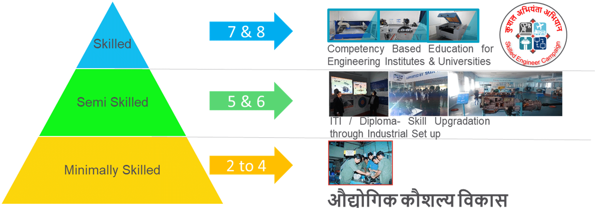 Training to impart skills to all categories from dropouts, ITI’s Poly & B Tech Graduates.